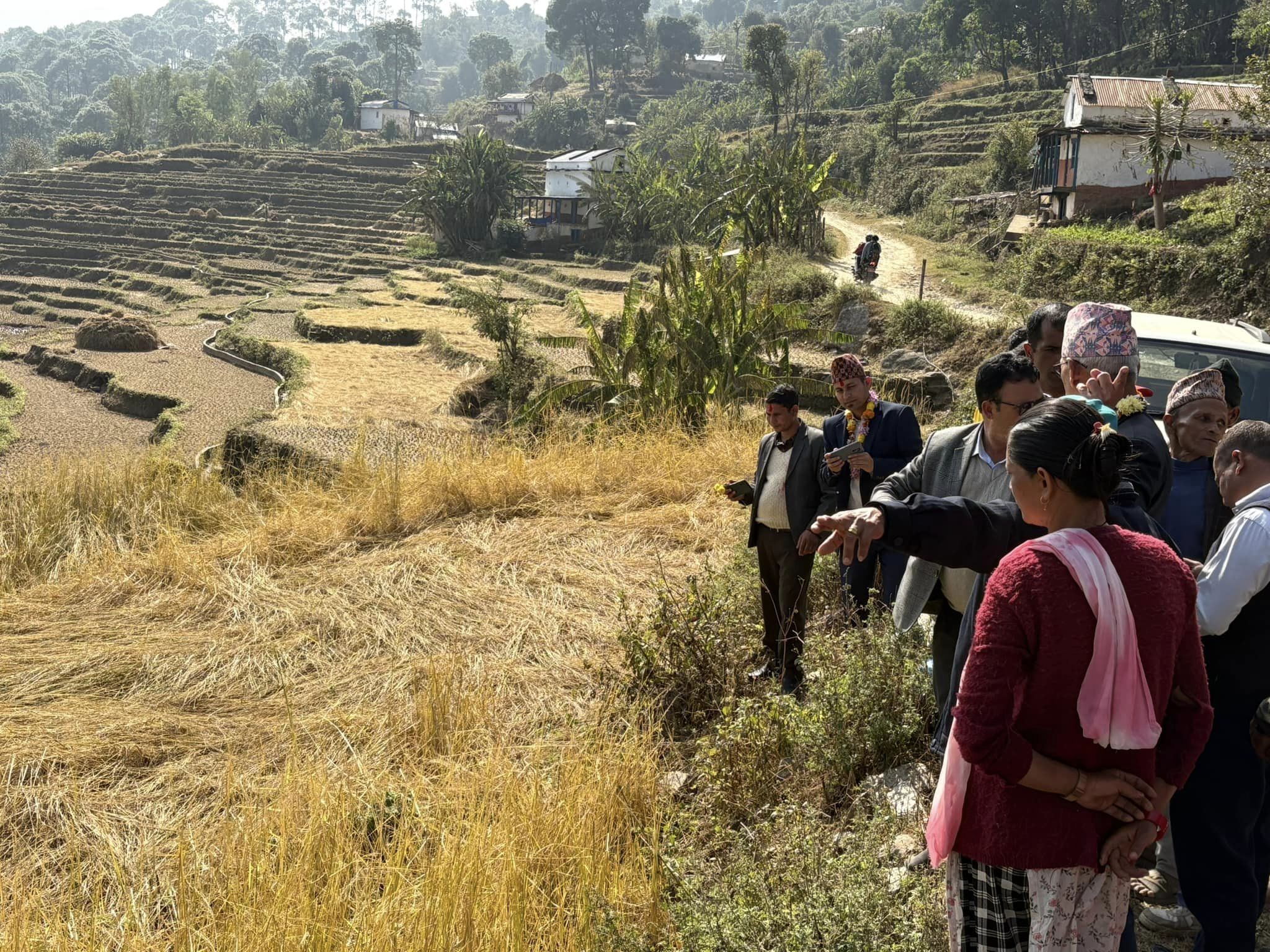 यस्तै, कर्णाली प्रदेशका भूमि व्यवस्था कृषि तथा सहकारीमन्त्री विनोदकुमार शाहले उक्त असिना–पानीले क्षती गरेको धान खेतको प्रत्यक्ष अनुगमन गरेका छन्। मंगलबार (कार्तिक २७) गते नारायण नगरपालिका–४ सोतमा रहेको मार्सिखेतमा असिनाले नष्ट गरेको धान बालीको अनुगमन गरेका हुन्।