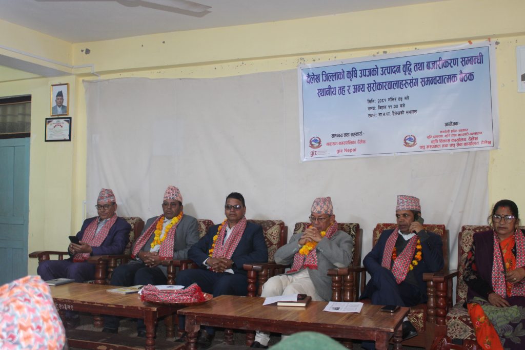 दैलेख । दैलेख जिल्लाको कृषि उपजको उत्पादन वृद्धि तथा बजारीकरण सम्बन्धी स्थानीय तह र अन्य सरोकारवालाहरुसँग समन्वयात्मक बैठक गरिएको छ। बुधबार कर्णाली प्रदेश सरकारको भूमि व्यावस्था, कृषि तथा सहकारी मन्त्रालय मातहतका कार्यालय कृषि विकास र पशु अस्पताल तथा पशु सेवा कार्यालय दैलेखको संयुक्त आयोजनामा गरिएको हो।
