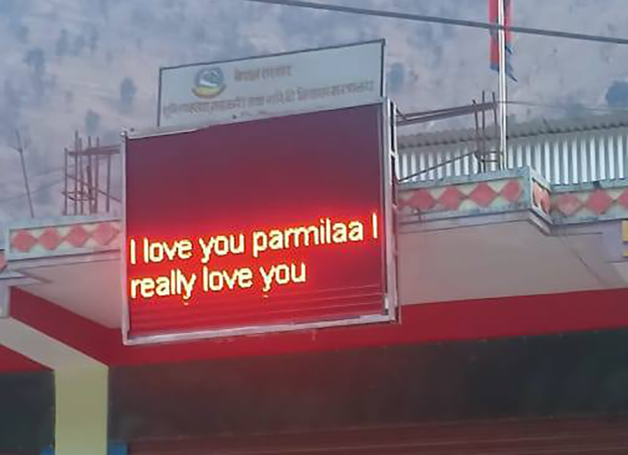 बोर्ड ह्याक गरेर ‘आई लभ यु प्रमिला, रेल्ली लभ यु’ लेखिएको छ।