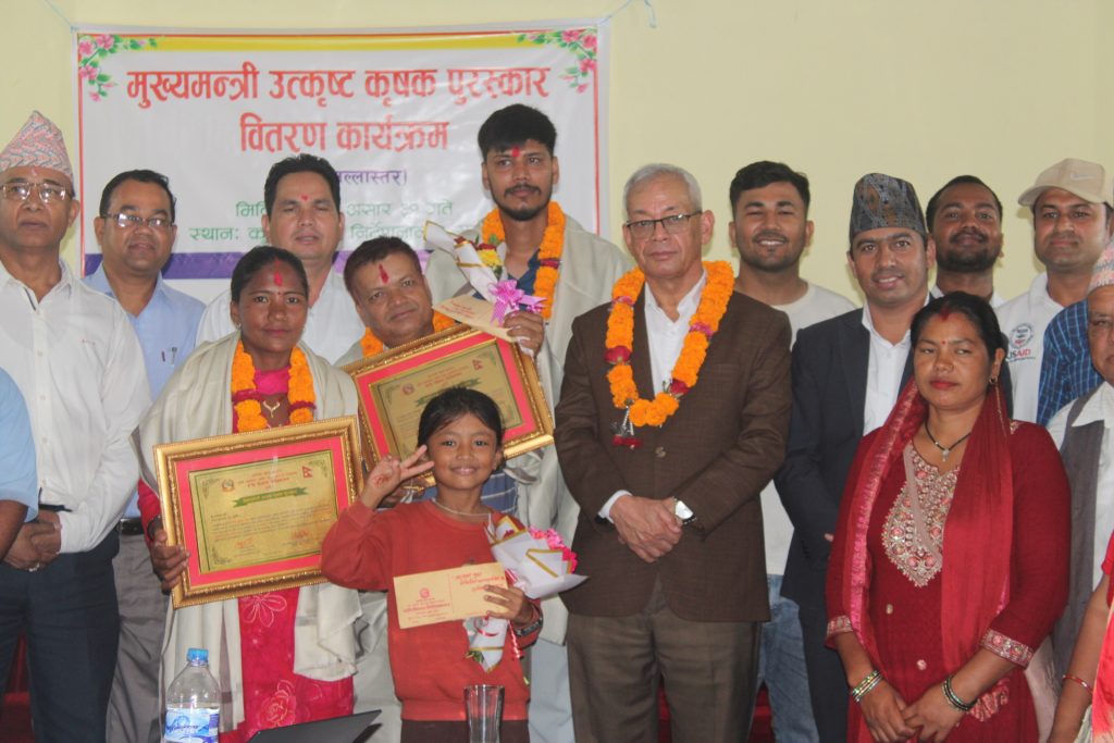 कार्यक्रमका प्रमुख अतिथि भूमि व्यवस्था, कृषि तथा सहकारीमन्त्री विनोदकुमार शाहले पुरस्कृत किसानलाई बधाई दिँदै थप सफलताका लागि निरन्तर कर्ममा लाग्न अनुरोध गरे।